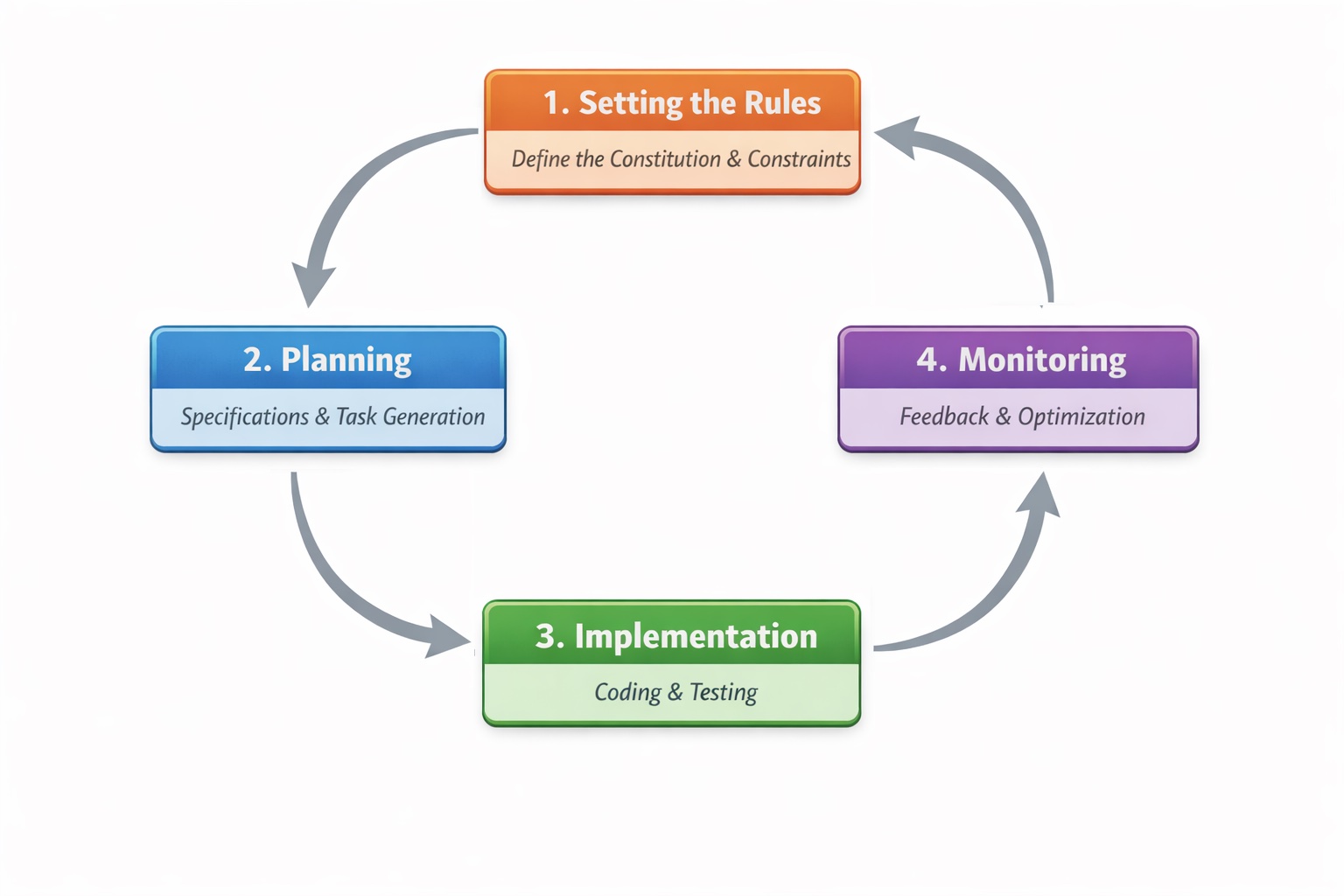 Phase 4: Continuous monitoring and improvement. The feedback loop doesn’t end at deployment. Production metrics, incidents, and operational learnings flow back into the specifications. A performance bottleneck becomes a new non-functional requirement. A security vulnerability becomes a constraint that shapes all future generations. User feedback triggers spec revisions rather than ad-hoc patches. When requirements change, and they will, you update the spec and regenerate affected components systematically, rather than hacking fixes into code that slowly drifts from its original intent.
